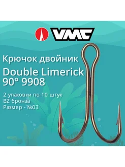 Крючки рыболовные (двойник) 9908 BZ №03 (2 упак по 10 шт)