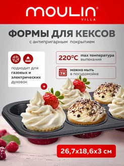 Форма антипригарная для 6 кексов, 26,7 x 18,6 x 3 cм