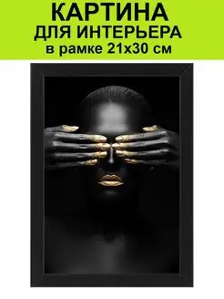 Картина в рамке 21х30 см Девушка с золотом негритянка Африка