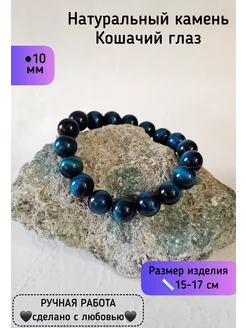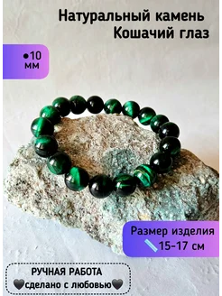 Браслет из натуральных камней кошачий глаз, хризоколла