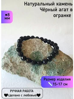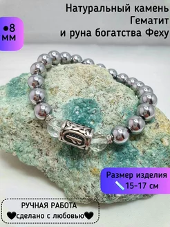 Браслет из натуральных камней гематит, горный хрусталь,руна