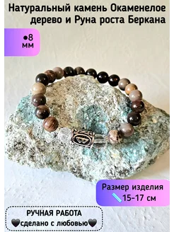 Браслет из натуральных камней Окаменелое дерево Руна Беркана