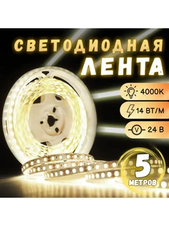 Лента светодиодная 5м белая 24В, 14Вт, 4000к