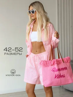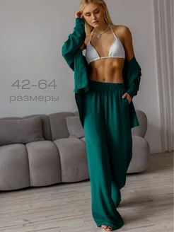 Летний костюм оверсайз с рубашкой и брюками больших размеров