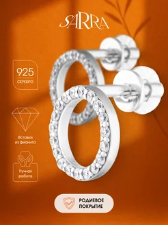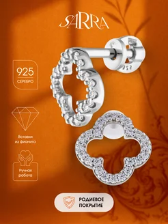 Серьги гвоздики с камнями серебро родированное 925 пробы