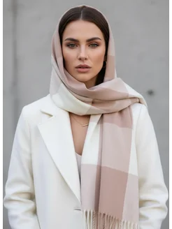 Палантин шарф кашемировый в клетку осень