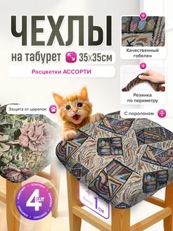 Чехол на табурет квадратный 4 шт с поролоном 35 на 35 см