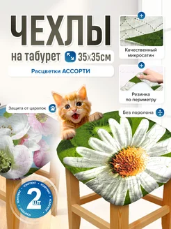 Чехол на табурет квадратный ассорти с резинкой 35 на 35 см