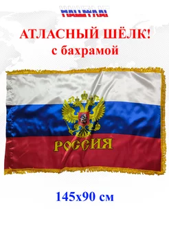 АТЛАСНЫЙ ШЕЛК! России с гербом 145Х90 Большой с бахромой