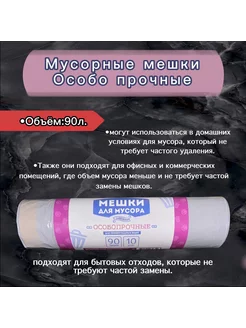 Мешки для мусора особопрочные 90 литров,40 мкм,ПВД