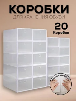Коробки для хранения обуви пластиковые прозрачные 20 штук