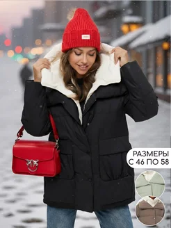 Пуховик зимний короткий оверсайз с капюшоном парка