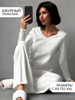 Пижама со штанами с длинным рукавом хлопок ажурная