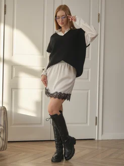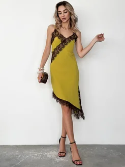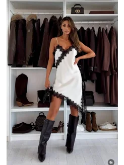 Трендовое Атласное Платье-Комбинация с Кружевом