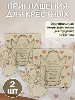 Приглашение для крёстных родителей на крестины 2шт
