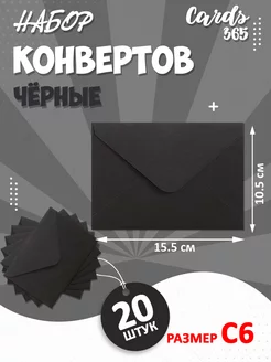 Черные конверты, С6 (15.5*10.5см), 20шт
