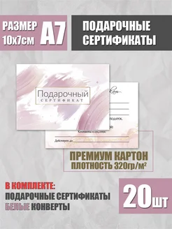 Подарочные сертификаты на услуги c конвертами 20 шт