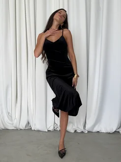 Платье комбинация праздничное миди бархат