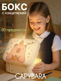 Канцелярский чемодан Капибара, подарочный бокс для девочки