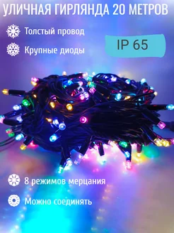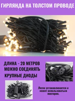 Гирлянда уличная 20 метров, тёплый белый свет, светодиодная