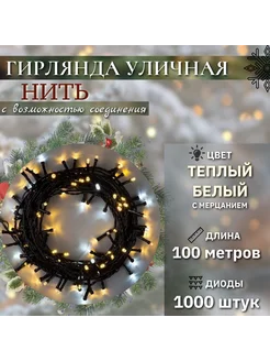 Уличная гирлянда нить 100 метров 1000 LED Теплый Белый