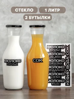 Бутылки стеклянные для молока и напитков с наклейками 1 литр