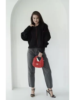 Свитшот оверсайз с начесом укороченный теплый модный у2к