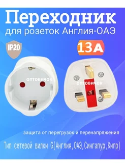 Переходник для розетки оаэ 13А