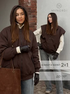 Бомбер-жилет трансформер утепленный со съемным капюшоном
