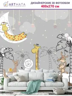 Фотообои детские 3D 400х270см Сказочный лес, звери, иллюстра…
