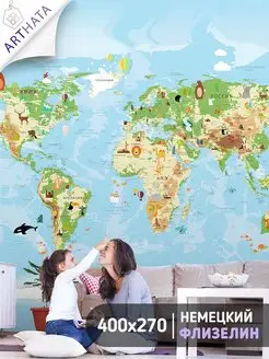 Фотообои Детские карта мира Животные 500х270см. География, з…