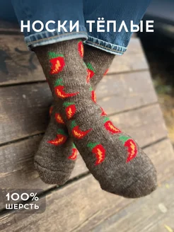 Носки теплые шерстяные высокие с принтом новогодние вязаные