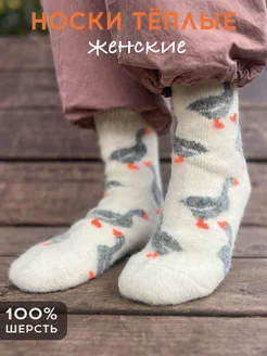 Носки шерстяные высокие теплые с принтом гуси новый год