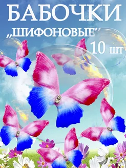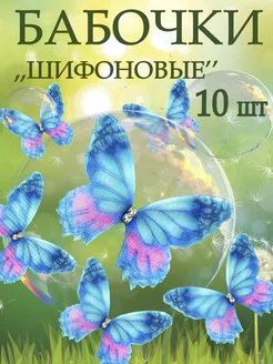 Шифоновые бабочки розово-голубые для букета рукоделия 10 шт