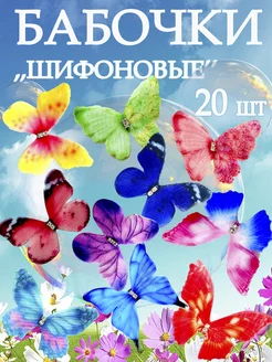 Шифоновые бабочки микс для букета и рукоделия 20шт