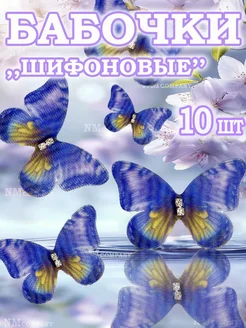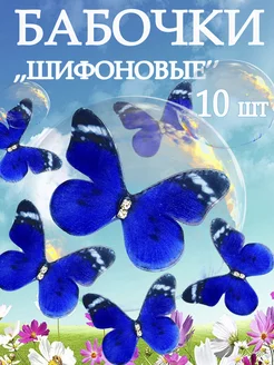 Шифоновые бабочки синие для букета рукоделия 10 шт