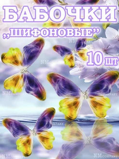 Бабочки " шифоновые " для рукоделия фиолетово - желтая