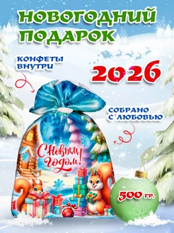 Новогодний подарок сладкий в атласном мешке (мешочек) 2026