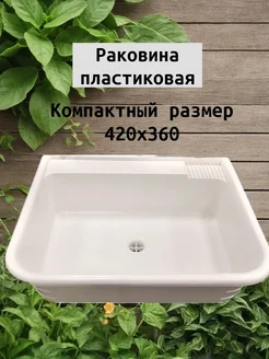 Раковина пластиковая с выпуском маленькая 420х360 мм