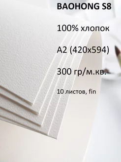 Бумага для акварели S8 100% хлопок 300г А2 fin 420х594мм