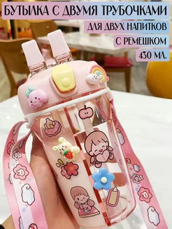 Бутылка-стакан для воды с двумя отделениями и трубочками