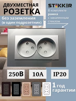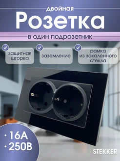 Розетка двойная в один подрозетник стеклянная внутренняя