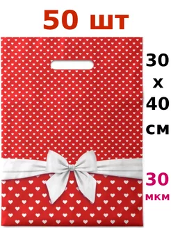Подарочные пакеты 30х40 с прорубной ручкой 50 шт