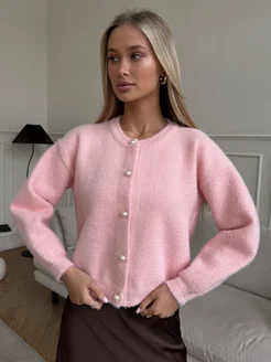 Кардиган укороченный на пуговицах пушистый
