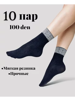 Носки капроновые с рисунком высокие 10 пар прочностью 100DEN