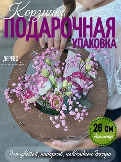 Деревянная корзина для упаковки цветов и подарков на 8 марта