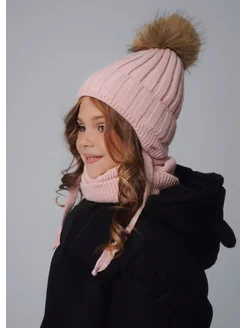 Шапка зимняя детская с помпоном и снуд