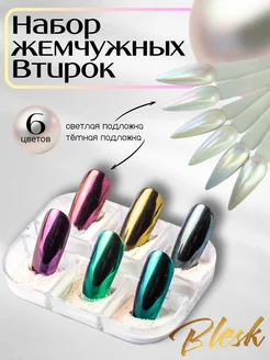 Втирка для ногтей жемчужная зеркальная, набор 6 шт
