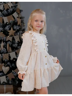 Детское нарядное платье из муслина с рукавами 2025