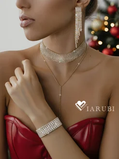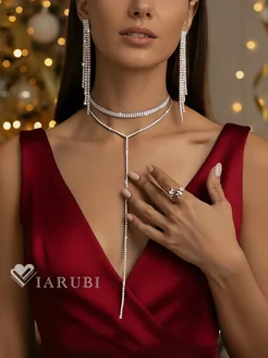 Комплект бижутерии 3в1 серьги, чокер и кольцо вечерние